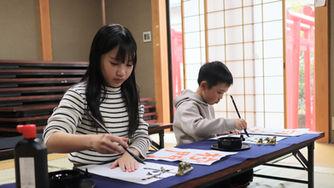 鳥居をくぐり、静かな社務所内で書道を嗜む。美しい文化体験をご提供しています。